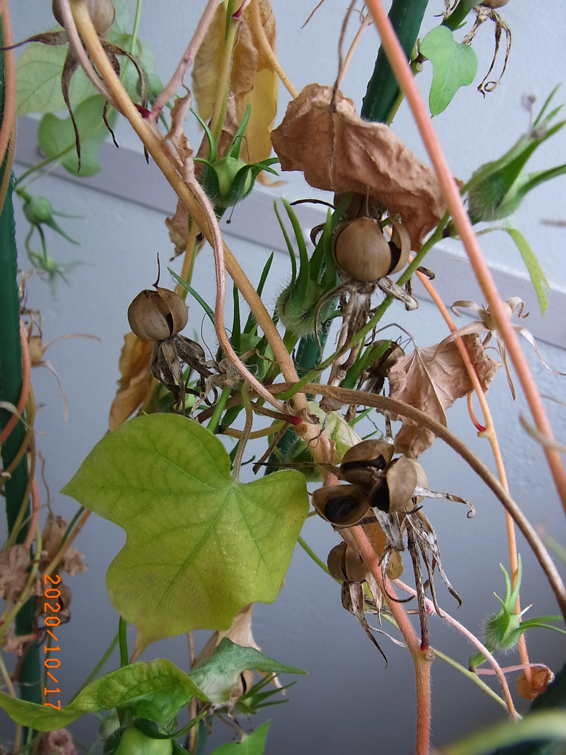 今年は蔓をぐんぐん伸ばして、花もじつによくつけた朝顔たちは、9月を境に寒さもあって月末から少しずつ枯れていった。ありがとう、朝顔、本当によく咲いてくれた。花のあとには種子がたくさんできている。茶色の皮に包まれた黒い種子。もう少したったら、枯れきったころに集めて来年にそなえようかな。
